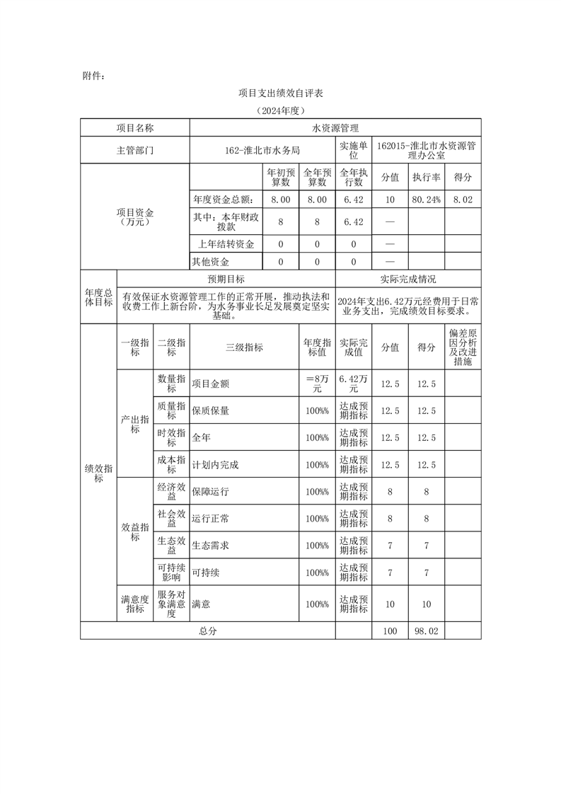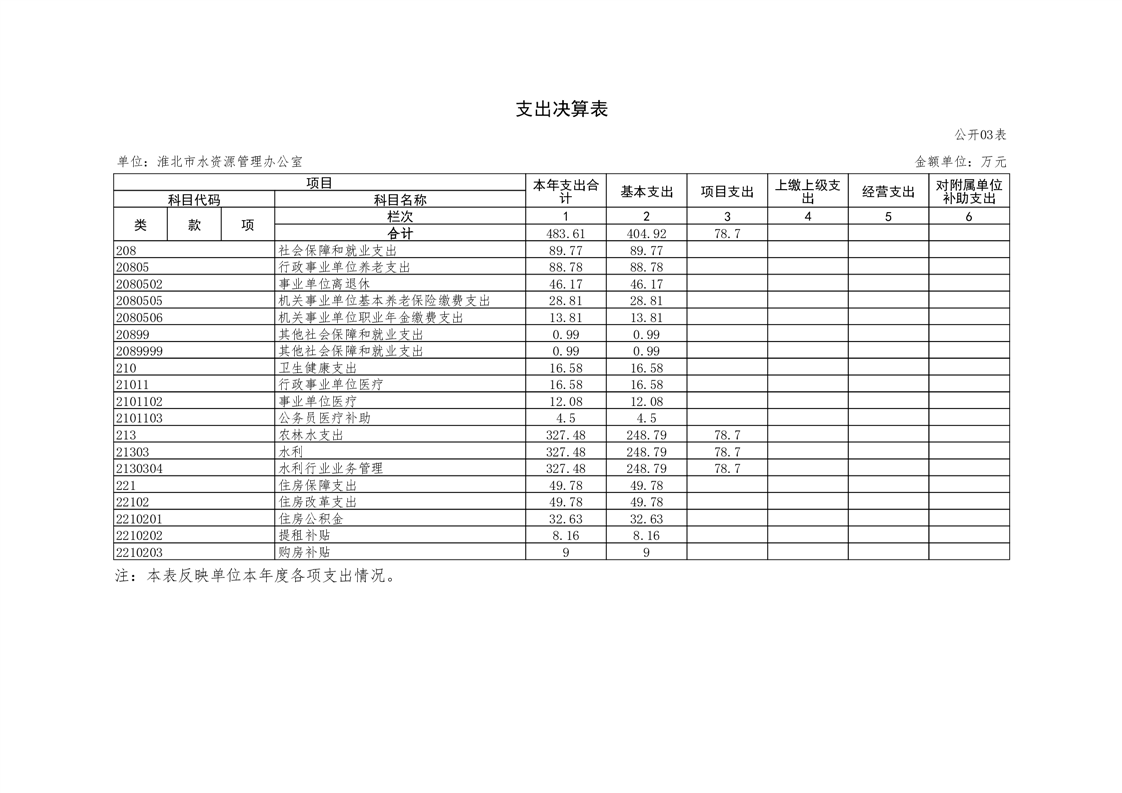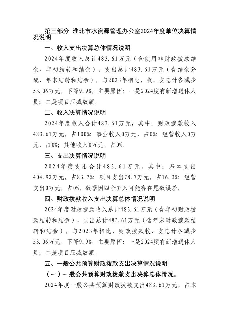 淮北市水资源管理办公室2024年度单位决算公开 |
