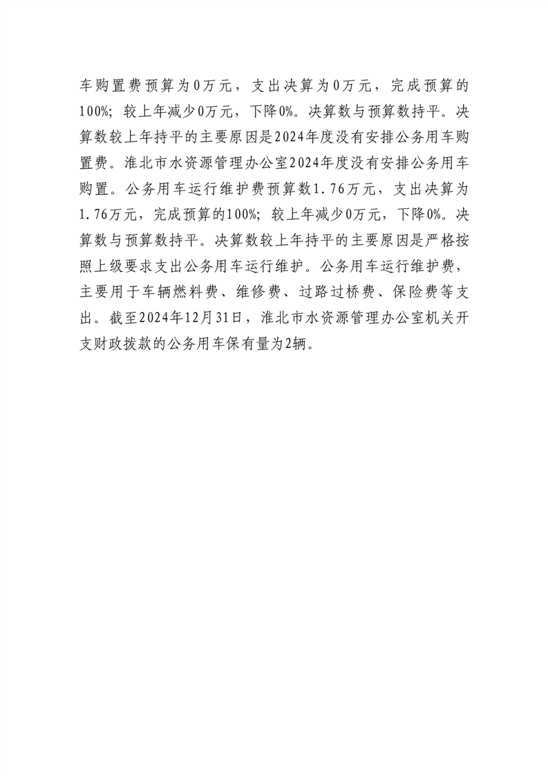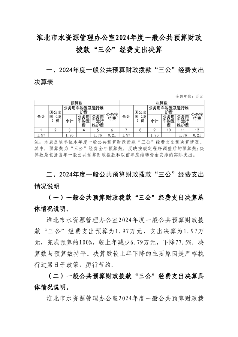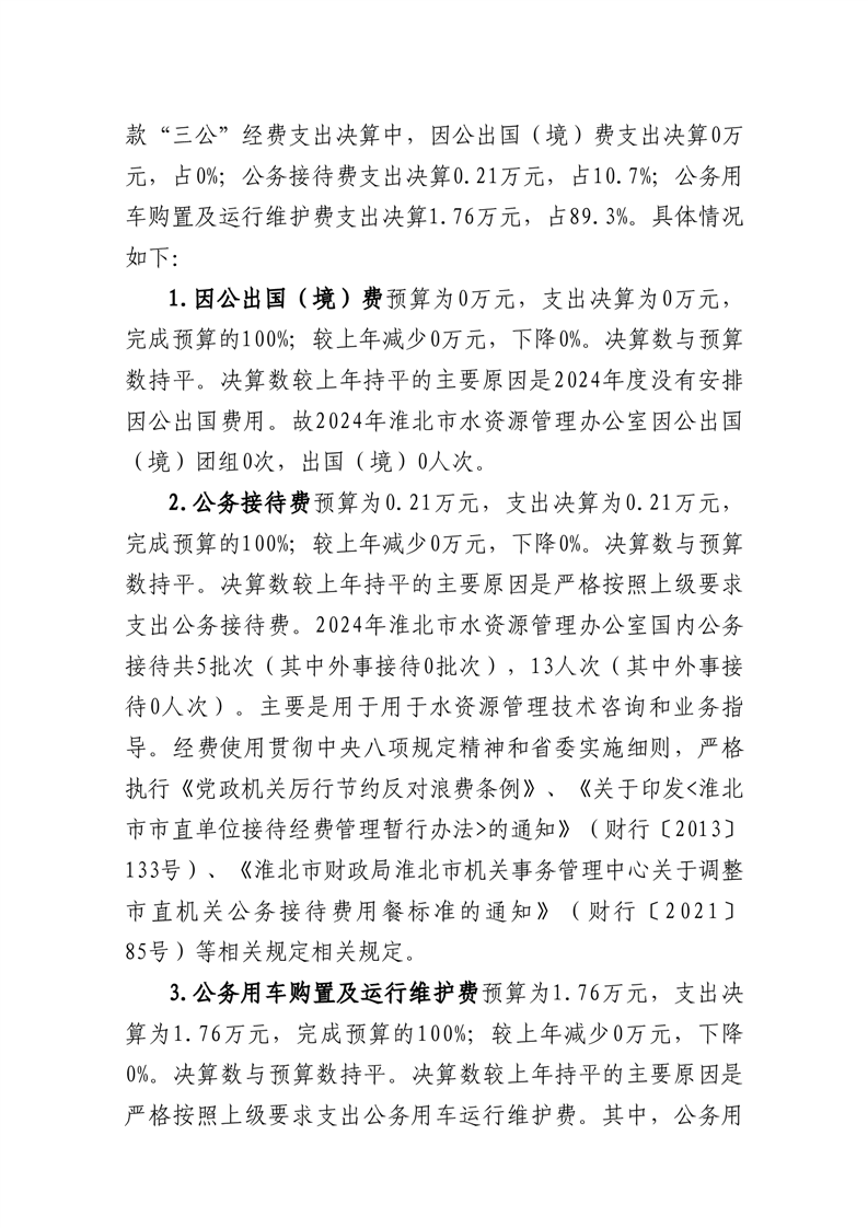 淮北市水资源管理办公室2024年度单位一般公共预算财政拨款“三公”经费决算情况说明